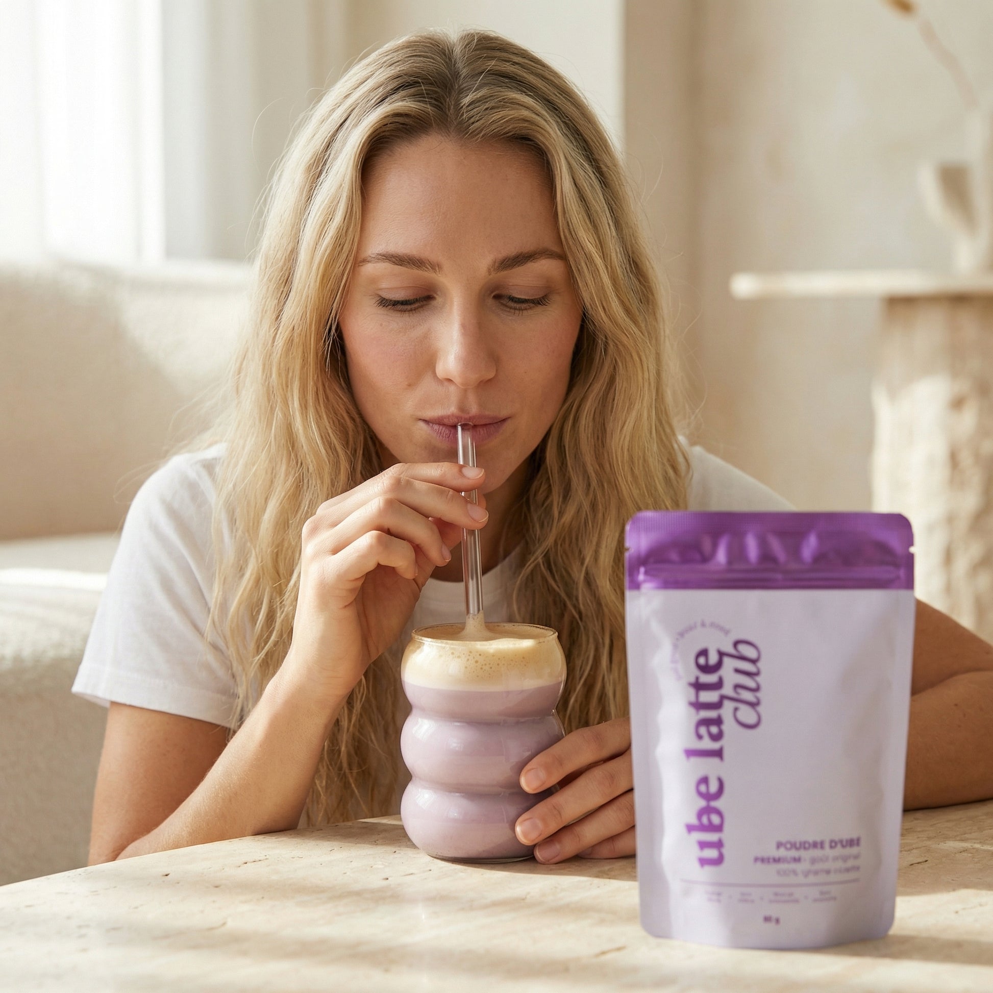 Là où le café stimule brutalement et le matcha apporte un effet plus vif lié à la théine, l’ube accompagne le corps différemment : il nourrit, soutient la concentration et invite à un moment de pause réconfortante.