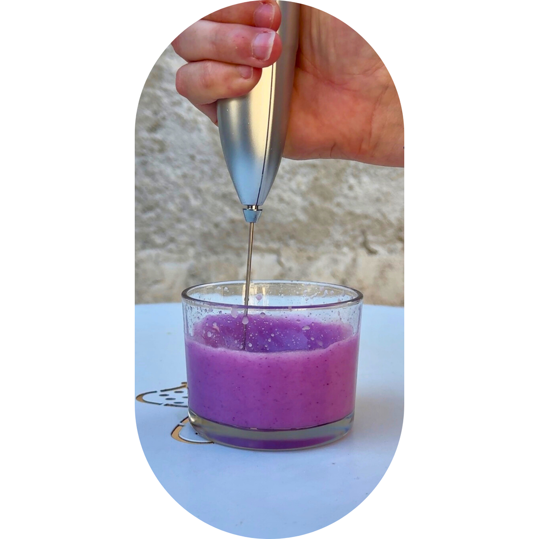 1. Diluez une cuillère à café de poudre d’ube dans un peu d’eau chaude, puis fouettez.